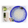 とらふぐ刺身70g(22cmプラ皿)、とらふぐ白子100g、とらふぐ湯引き皮30g、ぽん酢、ねぎ、もみじおろし、お召し上がり方説明書 |