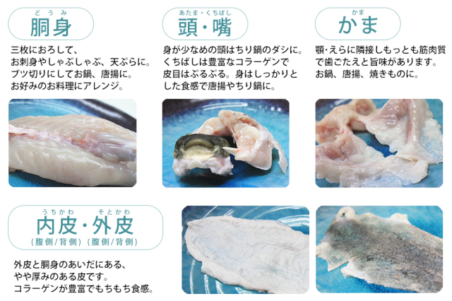 | セット内容 | 原体約1kg〜×2尾(正味量:1尾650g前後)、胴身2、頭2、口ばし2、かま2、外皮(背2、腹2)、内皮(背2、腹2)※外皮の小棘はそぎ取り済み。ひれ(胸・背・尻)はございません。ぽん酢、もみじおろし、調理説明書 |